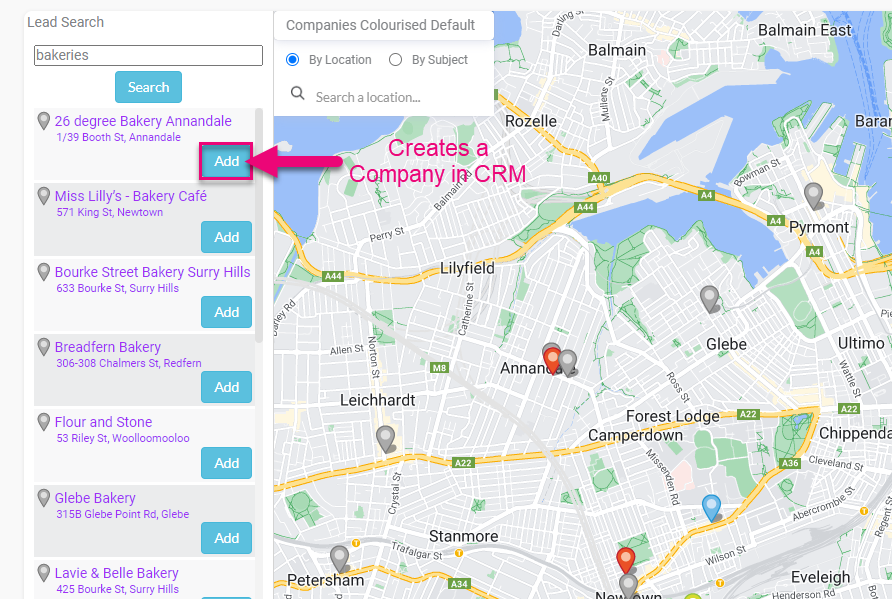 You can quickly add a new lead to CRM as a Company by clicking on the Add button on the list – add as many companies as you’d like.