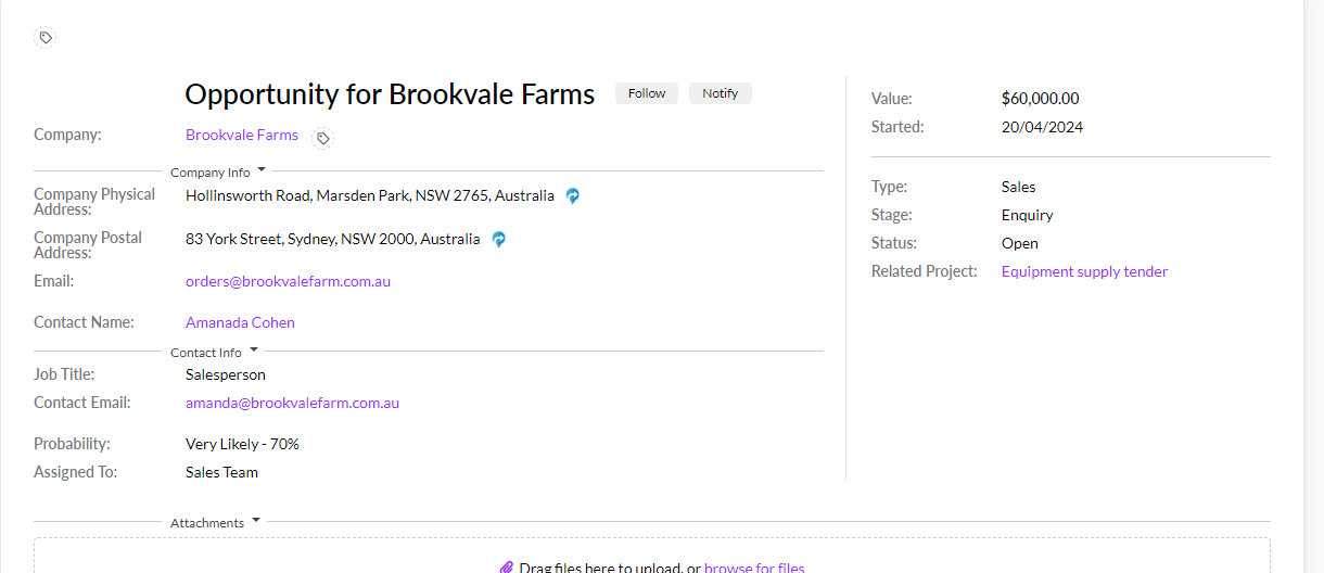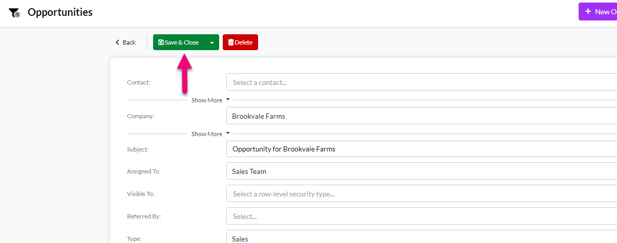 You’ve just created a new Company, Contact and Opportunity record in CRM!