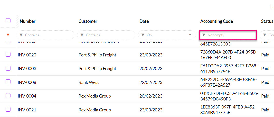 If your database is integrated with your accounting system, every record that is synced between your systems has its own unique identifier called Accounting Code.