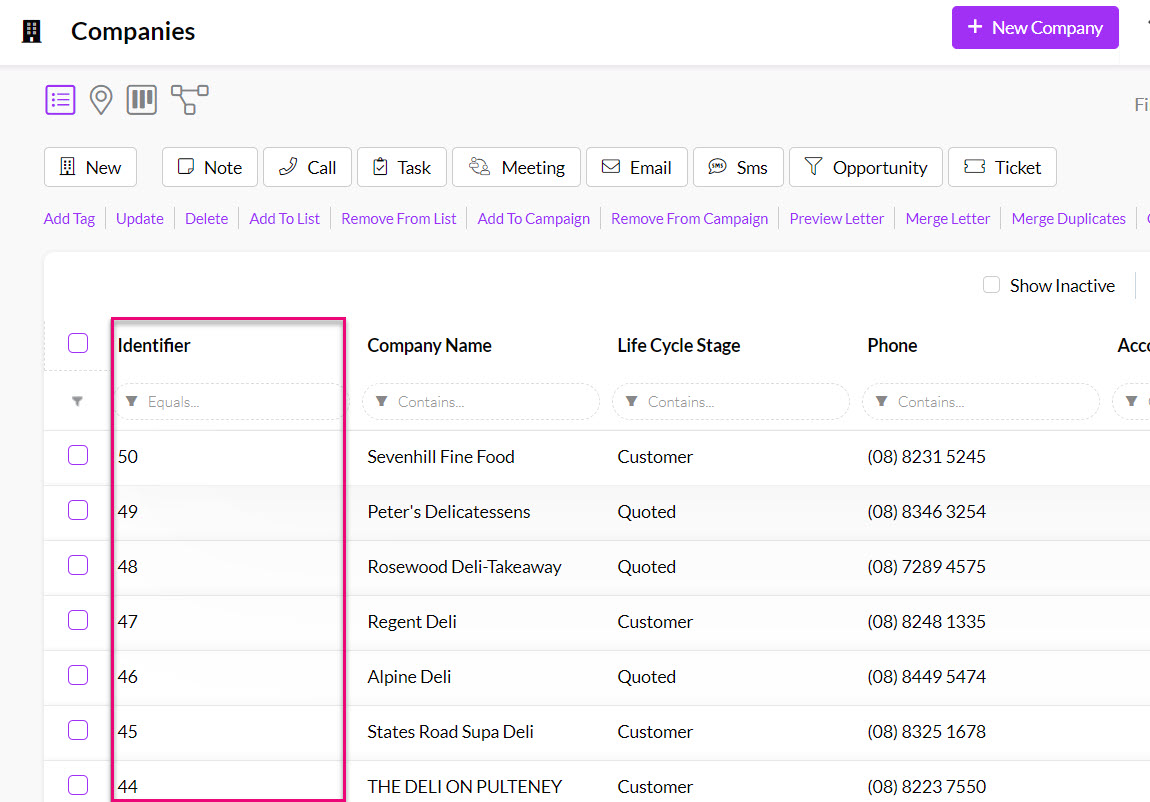 Identifier column in Companies