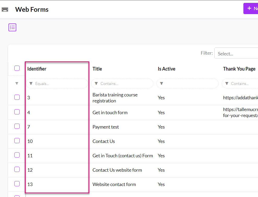 Identifier column in Web Forms