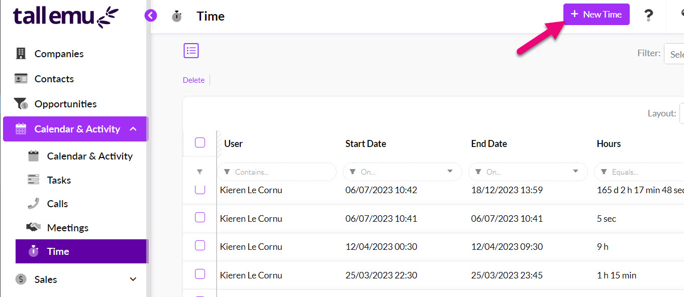Tasks work in conjunction with Time – you can have multiple Time entries that are added up to determine the total time spent on a Task. Click here to learn more about how to work with Tasks.