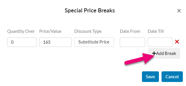 Here I can specify different price breaks so that the amount that customer is billed will reduce as the number of hours of support they use increases – I just click the Add Break button and it adds an extra row so that I can change the Quantity and Price figures.