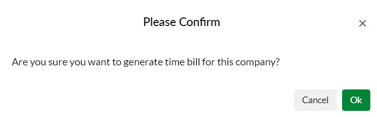 You can generate a time bill from a customer record (Company or Contact) or from a Project or Ticket from the activity bar using the Generate > Time Bill button.