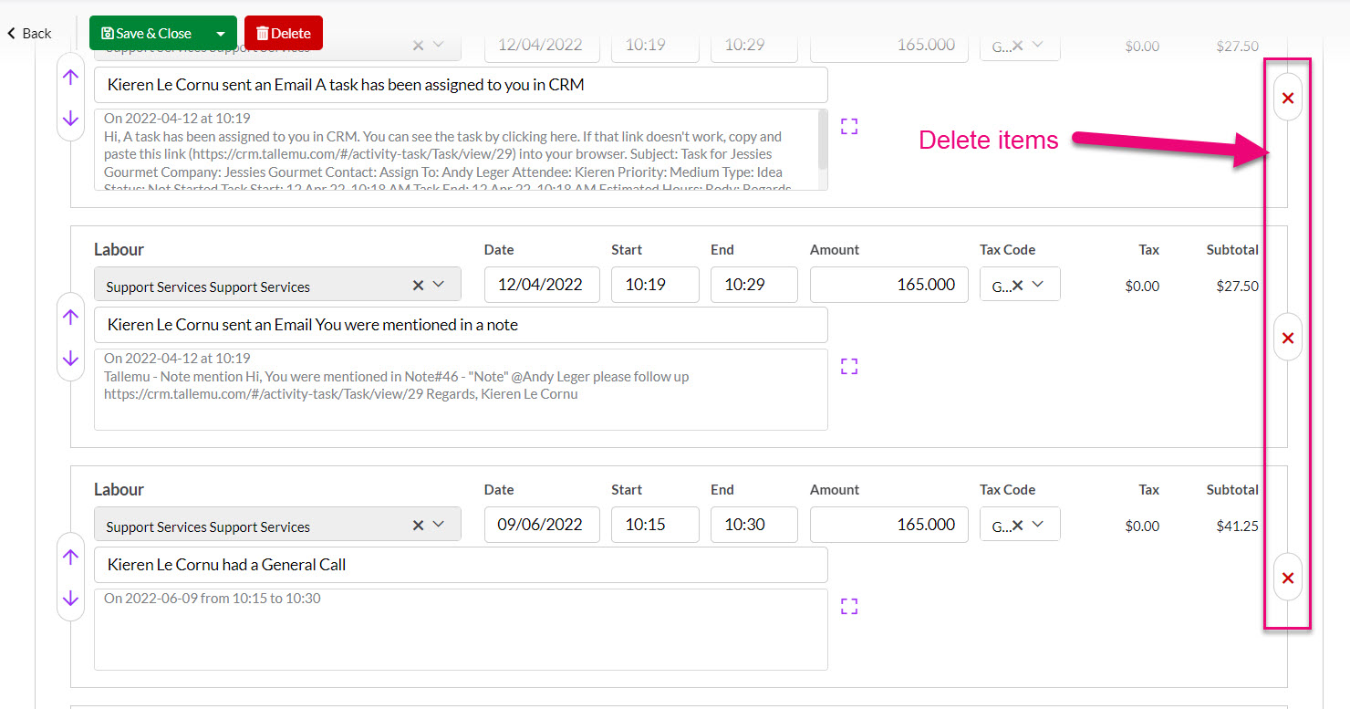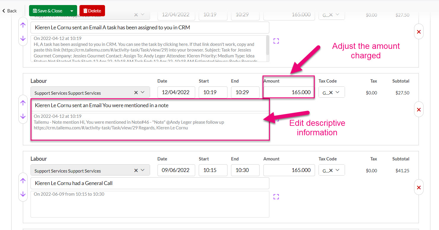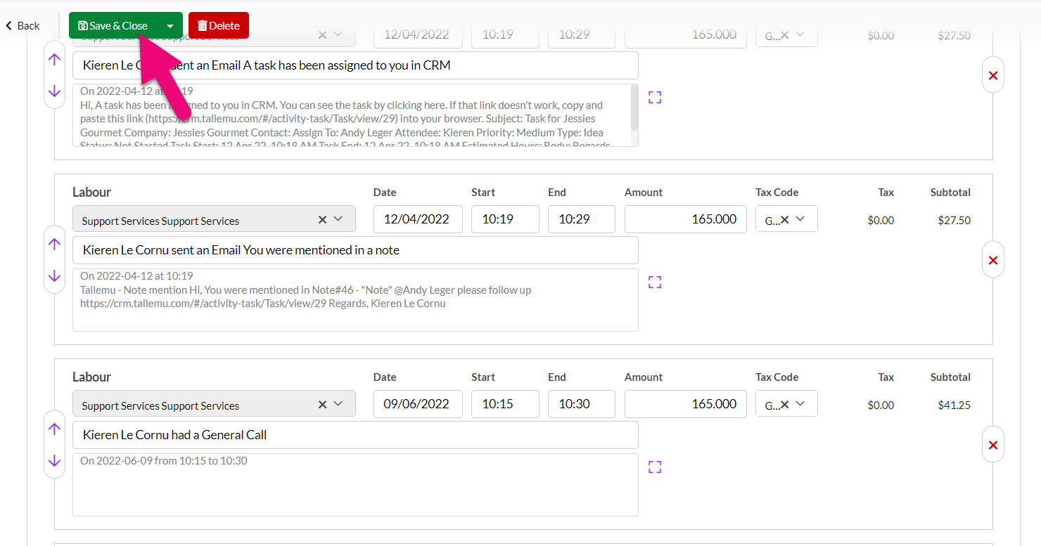 Emails and SMS work a little bit differently – in the earlier step when you configured the Time Billing settings in Admin > General, the Default SMS/Email Billing Duration figure you entered will be automatically applied to both these types of Activities.