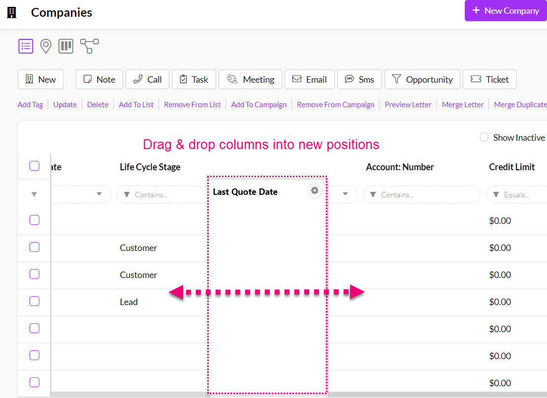 Adding Quote columns to List View in Companies