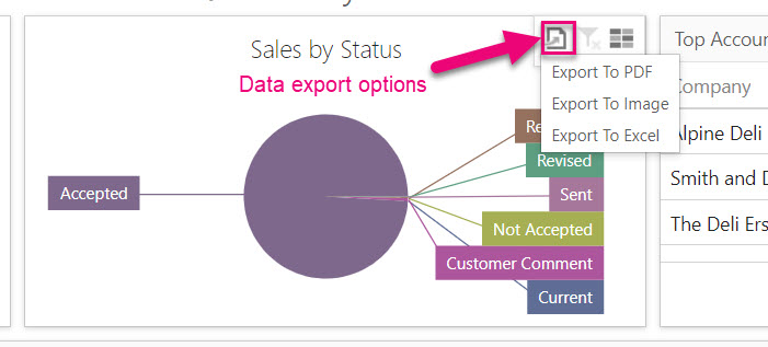 - You can also quickly export data using by clicking on the export icon to reveal export format choices.