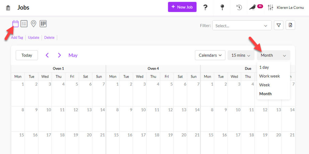 Calendar View in Jobs now allows for the date range to be adjusted.