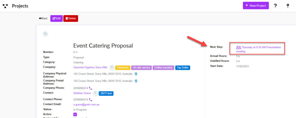 - Meetings now link with Projects so that they will display: