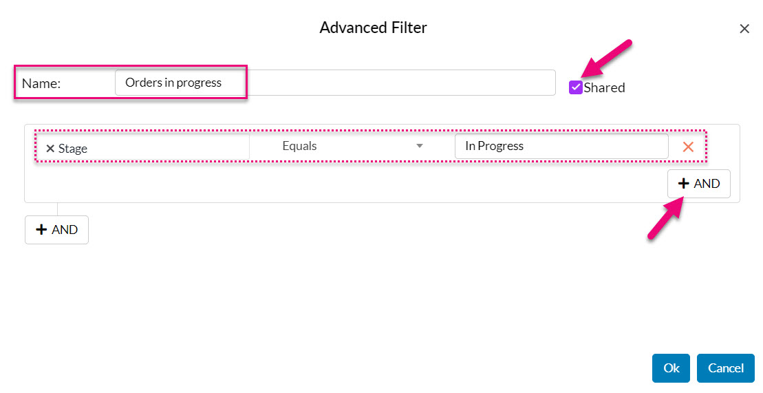 - If you want to share this with others, click the Shared box, otherwise the filter will remain private and only the creator can see it.