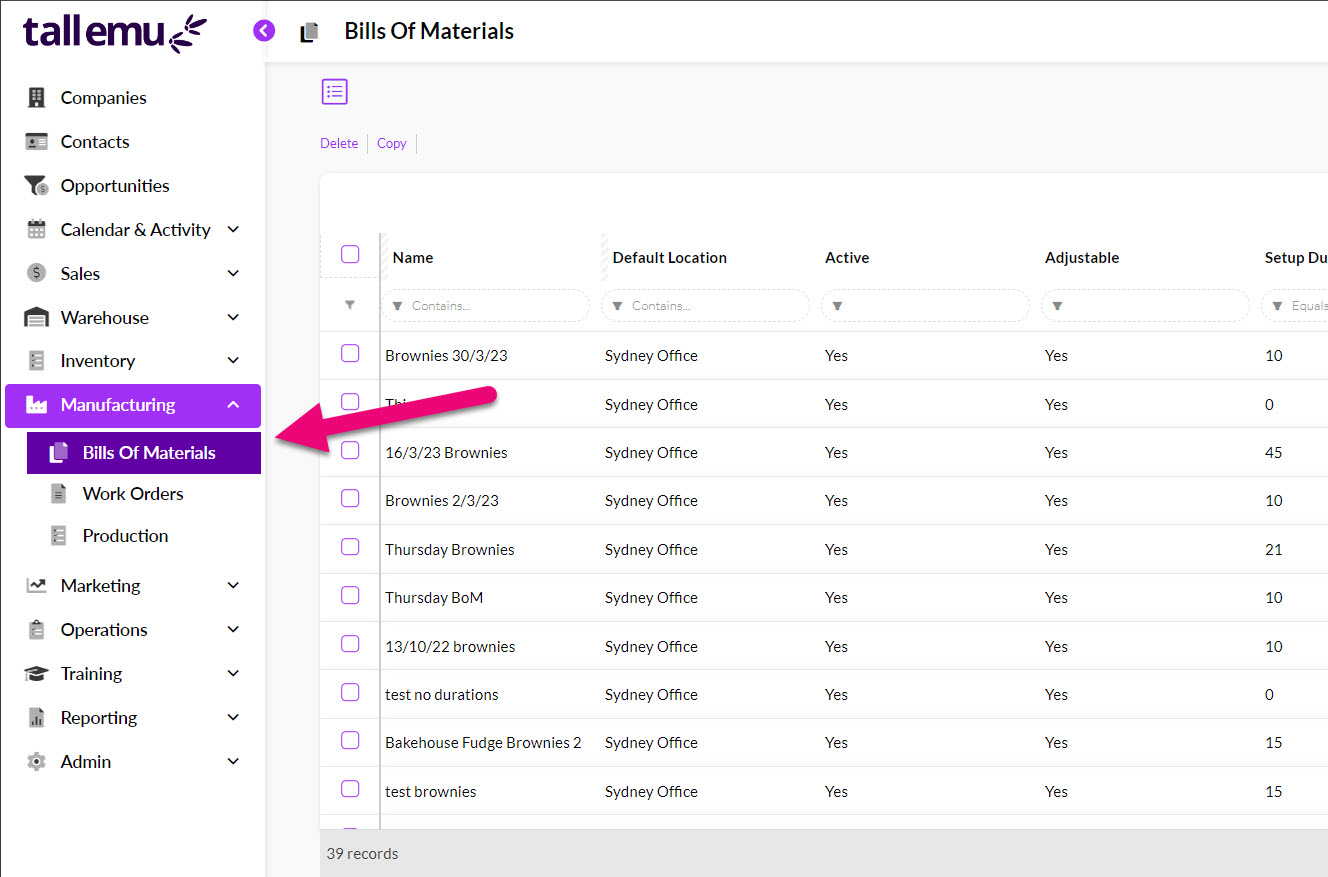 Now that you’ve told CRM which Products you manufacture, you need to tell the system how they are made.