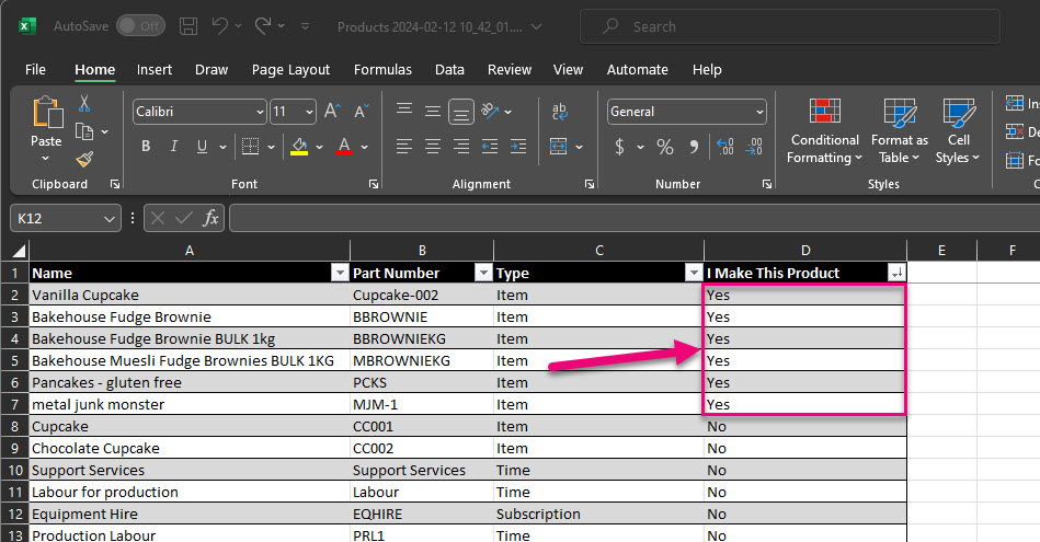 - Export your Product data from CRM to Excel, update the value in the I Make This Product column to equal “Yes” then reimport the data into CRM to update the applicable records.
