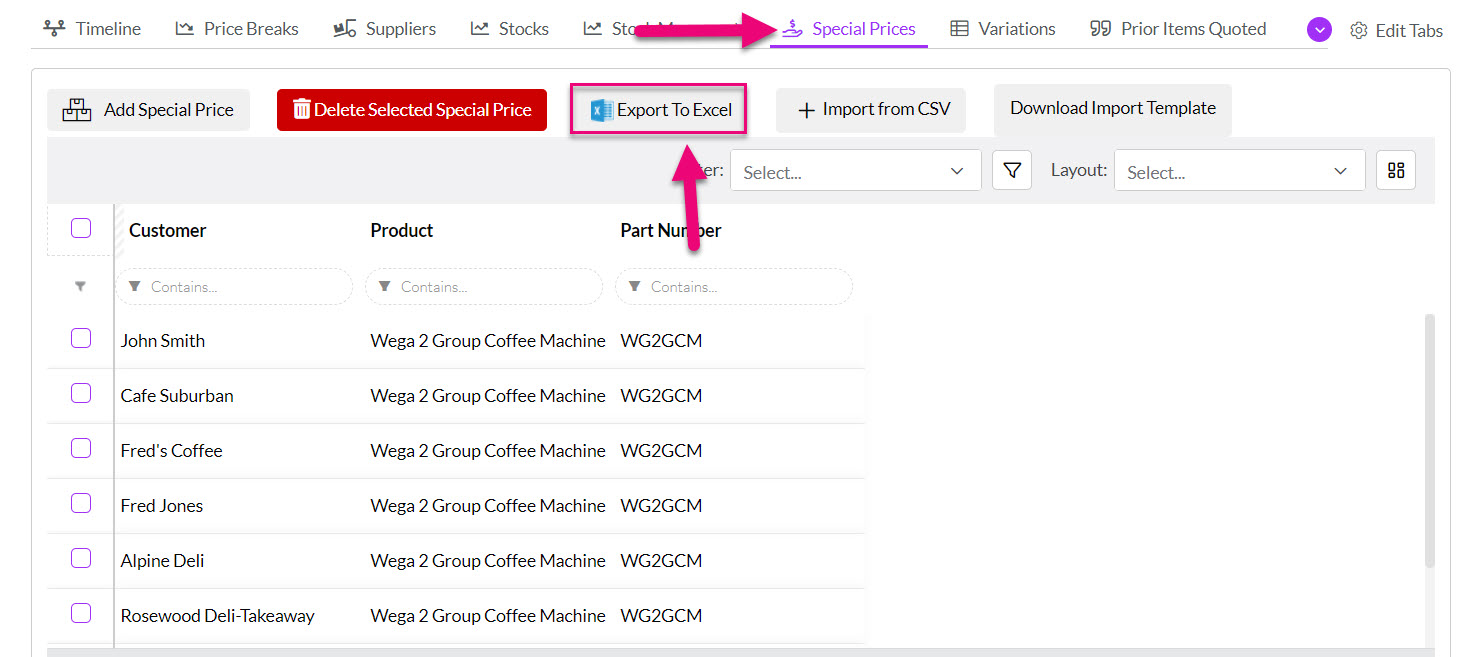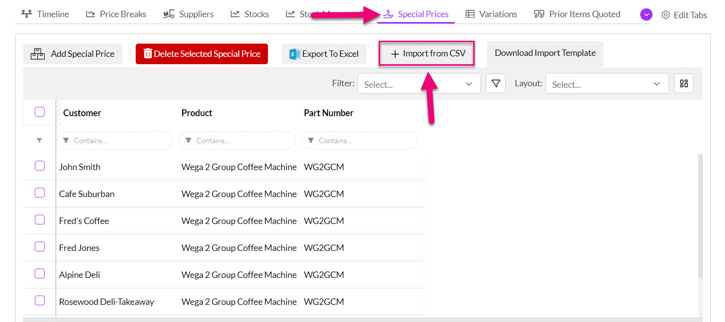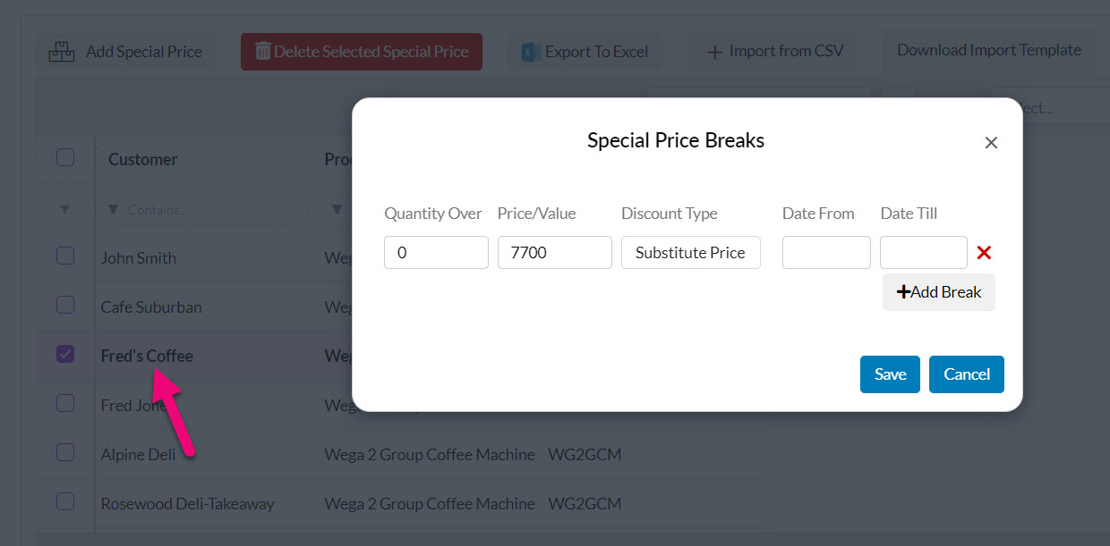 - The customers will then show in a list on the Special Prices tab.