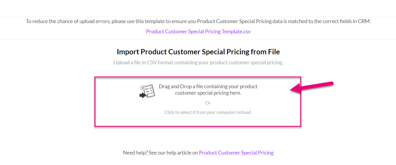 - In the top right-hand corner of CRM, click on the Excel icon and select Import Customer Price Breaks.